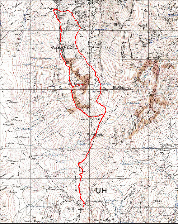 Altitudine 1775 mt. 1735 mt., Dislivello 940 mt., Percorrenza h 6.30 circa, Difficoltà E+